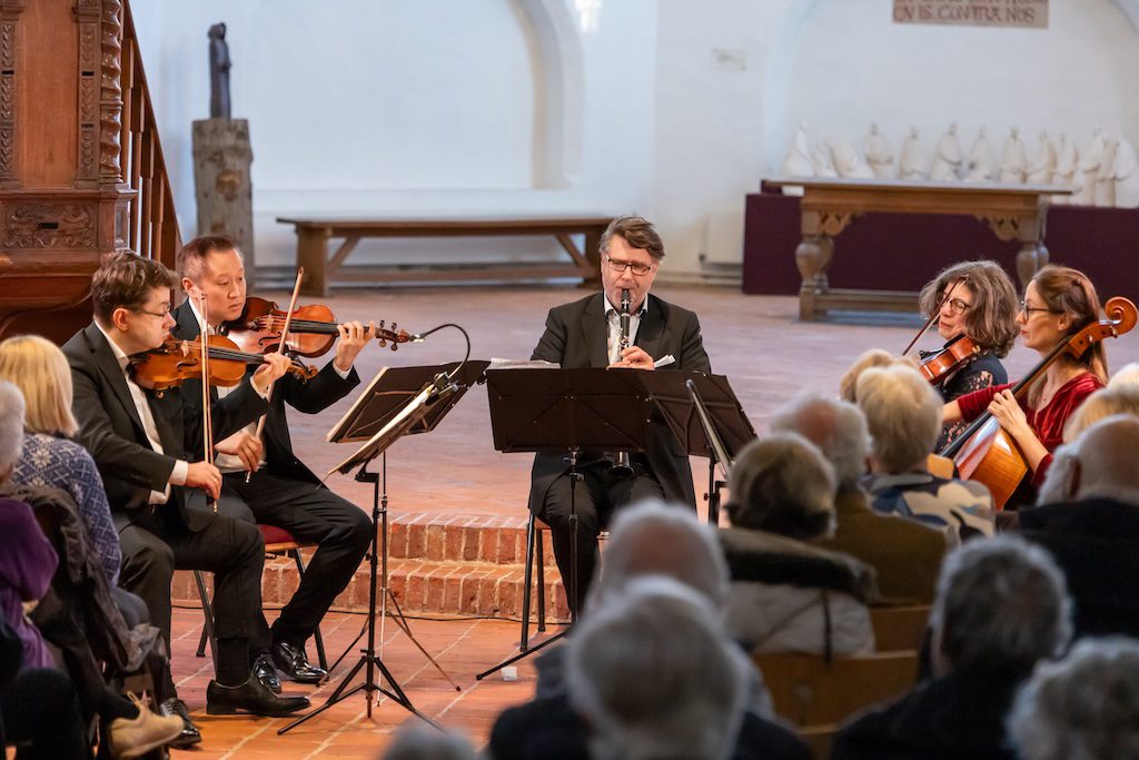 Bonifatiuskerk Vries, 16 november 2025 Zo ongeveer jaarlijks komt een delegatie van het NNO in hun serie Kamermuziek langs bij Kerkconcerten Vries. Dit jaar werd dat het Klarinet Kwintet dat uitvoerde het Kwintet voor klarinet en strijkkwartet van Mozart KV 581 en van Brahms het Klarinet Kwintet opus 115. Het Mozart Kwintet kwam uw verslaggever zeer bekend voor: alsof ik een CD uit mijn verzameling afspeelde. Een prachtige uitvoering met in de compositie subtiele herhalingen. In een kritiek werd gesproken van Onderhuidse Schoonheden. Het was een feest der herkenning. Altvioliste Ulrike deed de inleidingen met gezellige praatjes. Na de koffie was het: Fijn dat jullie er allemaal nog zijn. Ze lichtte toe over Brahms: Het stuk duurt een beetje lang misschien, maar als u aan het eind een wijsje hoort als in het begin, weet u dat het bijna is afgelopen. Even een snelle uitleg over deel 3, het Andantino – Presto non assai, ma con sentimento, hetgeen betekent: zeer snel, maar toch niet al te snel, en met gevoel. Het gevoel was er zeker; het was weer mooi daar in de Dorpskerk. Tekst: Maarten Dollekamp
