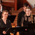Vorige maand hadden we Jong Talent van het conservatorium in huis, nou dit was zeker ook jong talent te noemen. Ubi Caritas werd in drie uitvoeringen gezongen: Gregoriaans (buiten een vast tempo: probeer dat maar ’s gelijk te krijgen), die van Gjeilo ging bij het professionele af, zo ook die van Duruflé. Handige muziek: als ze Amen zingen, weet je dat het is afgelopen. Nog wat bekendere nummers: O vos omnes van De Victoria, het Crucifixus van Lotti, Hör mein Bitten van Mendelssohn. Verder nog het Miserere van MacMillan (moeilijk stuk zeg, vooral bij de dames!) en tot slot het Stabat Mater van Rheinberger dat in de hele bezetting met orgel en strijkkwartet werd uitgevoerd. Vergevorderde, zeer geoefende zangers, vele halve nootjes tegen elkaar en de hoge noten zonder wringende klanken, dat alles klinkt alleen mooi als iedereen loepzuiver zingt.
